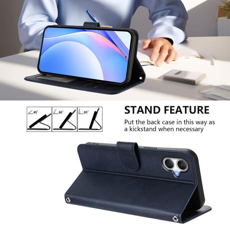 Funda de cuero con relieve RFID y cordón para Samsung Galaxy A06 4G/5G (azul)