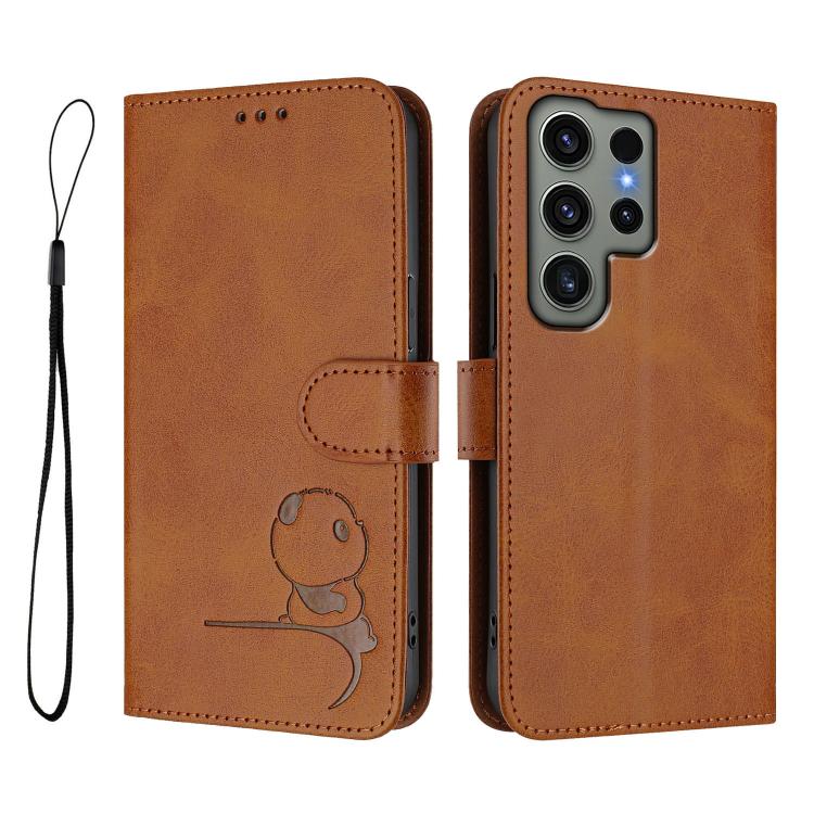 Funda de cuero con relieve RFID y cordón para Samsung Galaxy S23 Ultra 5G (marrón)