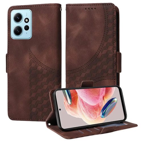 Funda de Cuero con Relieve Romboide y Estrellas para Redmi Note 12 4G (Marrón)