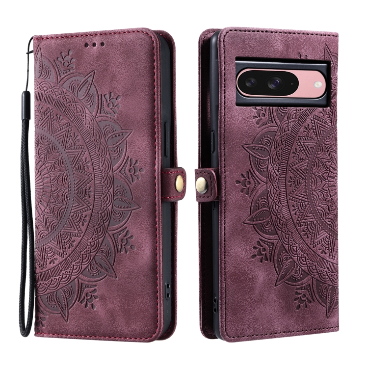 Funda de Cuero con Relieve Totem para Google Pixel 9 y 9 Pro (Rojo Vino)