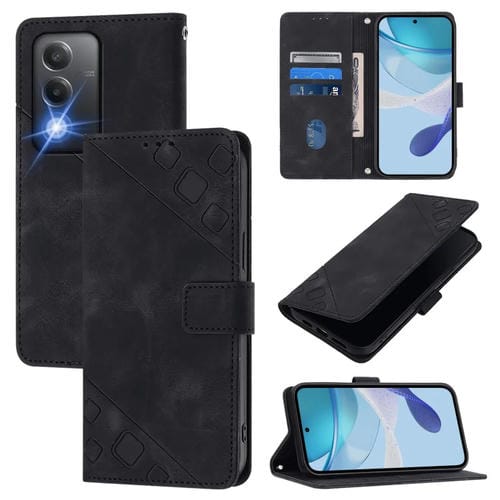 Funda de Cuero con Relieve y Tacto de Piel para Oppo K12X 5G (Negra)