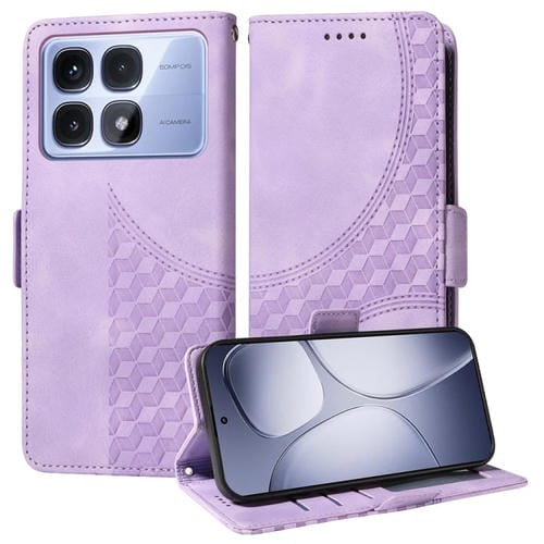 Funda de Cuero con Rombos En Relieve y Estrellas para Redmi K70 Ultra (Morado)