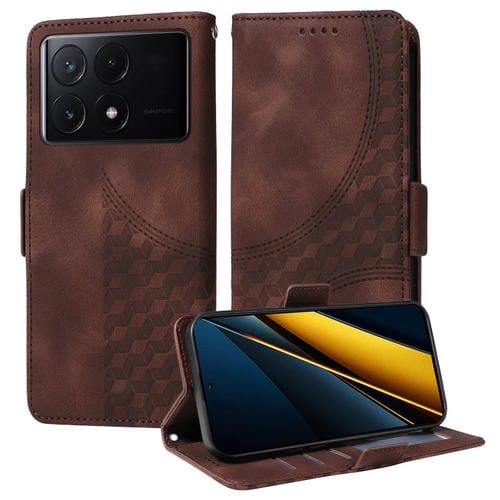 Funda de Cuero con Rombos En Relieve y Estrellas para Redmi K70E 5G (Marrón)