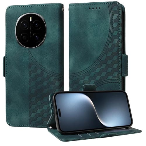 Funda de Cuero con Rombos y Estrellas en Relieve para Honor Magic7 Pro (Verde)