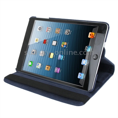 Funda de Cuero para iPad Mini 1/2/3 con Rotación 360 Grados y Soporte (Azul Oscuro)