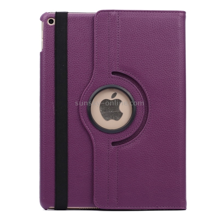Funda de Cuero con Tapa Textura Litchi Rotación 360° Soporte 2 Engranajes para iPad Air 2 (Púrpura)