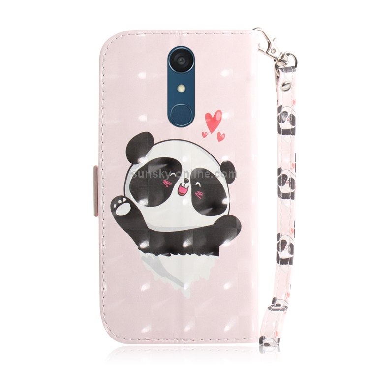 Funda Cuero con Tapa Horizontal Panda Corazón 3D para LG Q Stylo 5 con Soporte y Ranuras