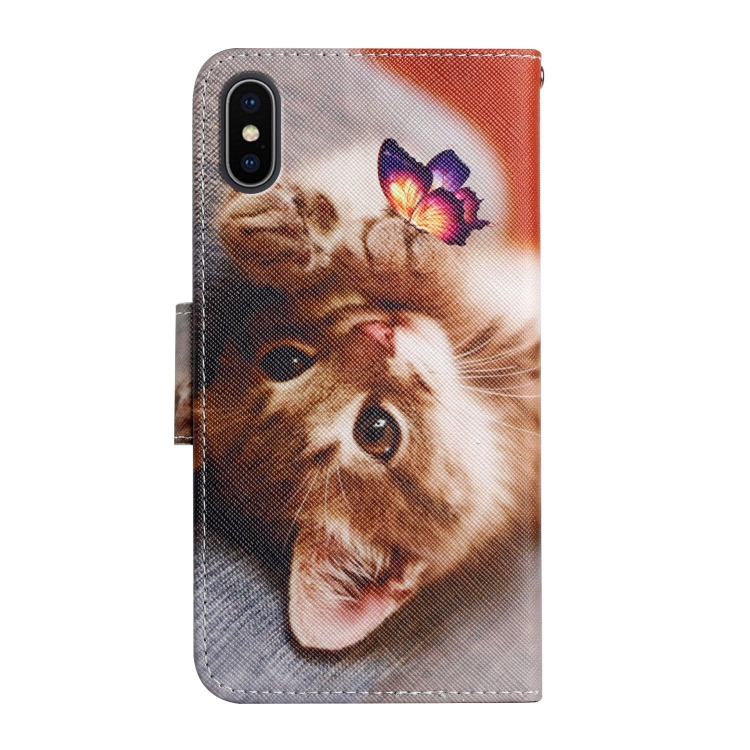 Funda de Cuero para iPhone Xs Max con Tapa Horizontal, Soporte, Ranura para Tarjeta y Billetera (Gato Mariposa)