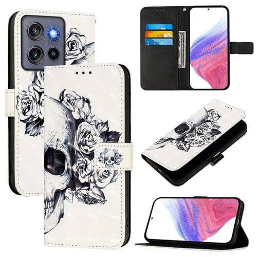 Funda de Cuero con Tapa Horizontal y Pintura 3D para Motorola Edge 50 Neo (Calavera)