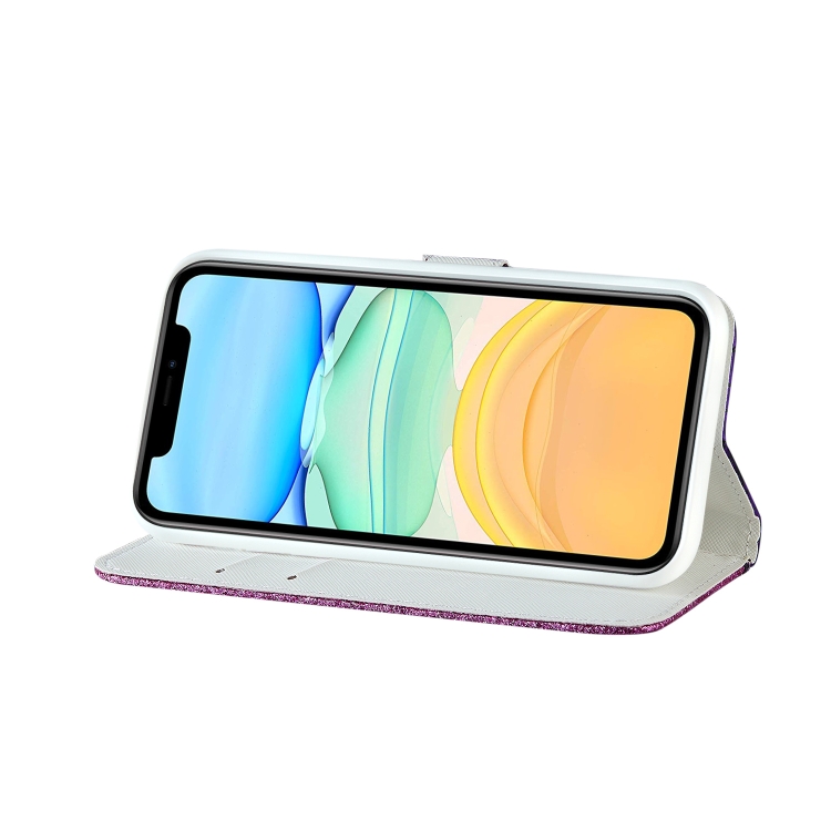 Funda de Cuero iPhone 13 Mini Textura Cocodrilo Tapa Horizontal Ranuras Tarjetas Soporte Billetera (Púrpura)