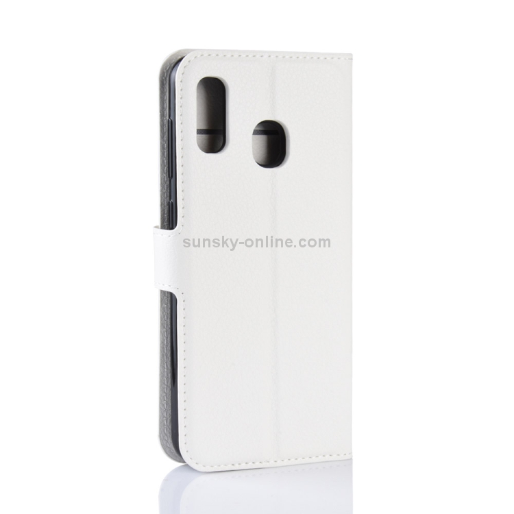 Funda de cuero con tapa horizontal con textura Litchi para Galaxy A40, con billetera, soporte y ranuras para tarjetas (blanco)
