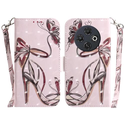 Funda de Cuero con Tapa Horizontal 3D para Tecno Spark 30C (Mariposa y Tacón Alto)