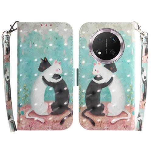 Funda de Cuero con Tapa Horizontal 3D para Honor X9C (Gato Blanco y Negro)