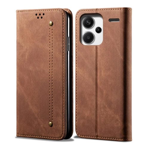 Funda de Cuero con Tapa Horizontal y Textura Vaquera para Redmi Note 13 Pro+ (Marrón)