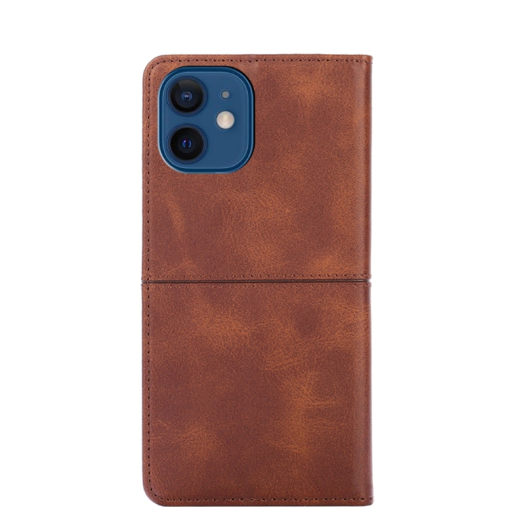 Funda de Cuero iPhone 13 Mini Tapa Horizontal Magnética Soporte Ranuras (Marrón Oscuro)