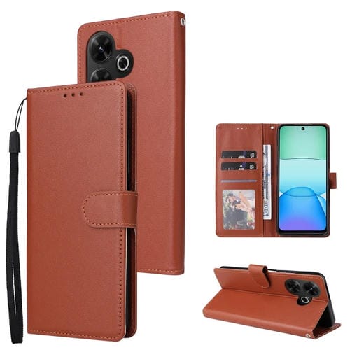 Funda de Cuero con Tapa Horizontal Multifuncional para Teléfono Xiaomi Redmi 13 4G con Ranura para Tres Tarjetas (Oro Rosa)