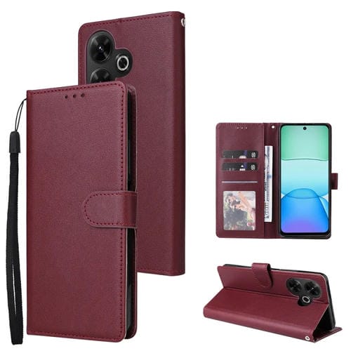 Funda de Cuero con Tapa Horizontal Multifuncional para Teléfono Xiaomi Redmi 13 4G con Ranura para Tres Tarjetas (Rojo Vino)