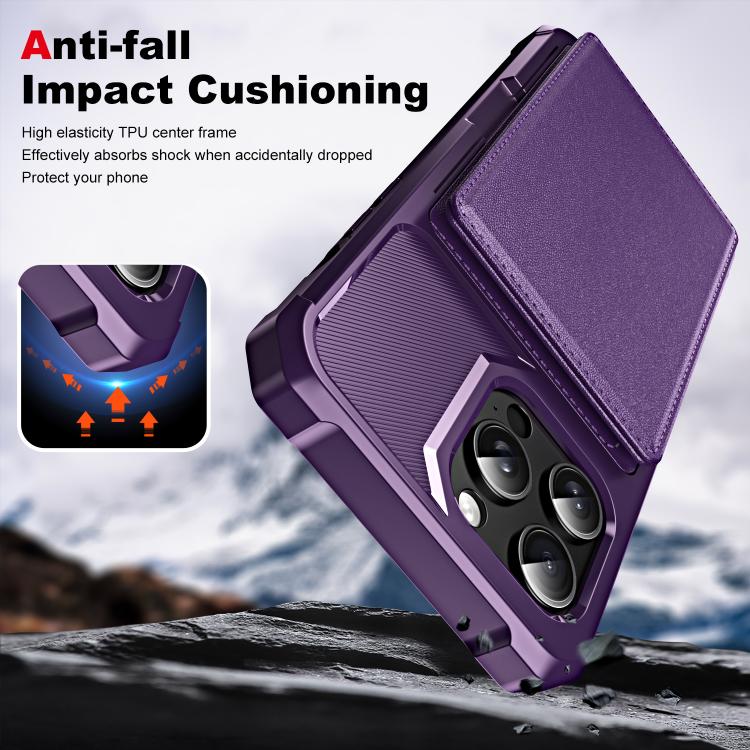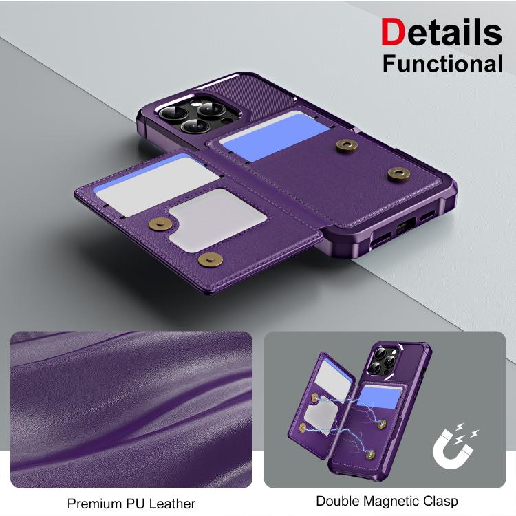 Funda de Cuero con Tapa Horizontal para iPhone 15 Pro Max Tarjetero (Morado)