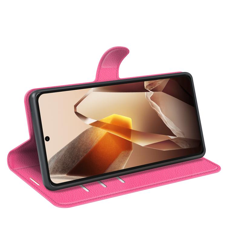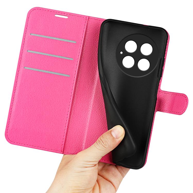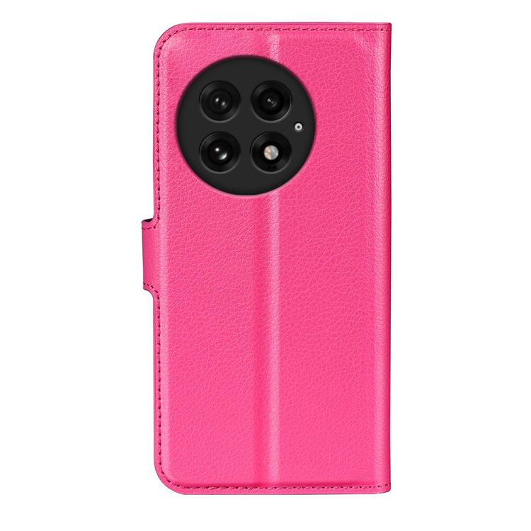 Funda de Cuero para OnePlus 13 con Tapa Horizontal, Textura de Lichi y Soporte (Rojo Rosa)