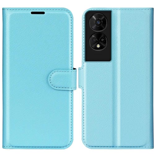 Funda de Cuero para TCL 50 5G con Tapa Horizontal y Textura de Lichi con Soporte (Azul)