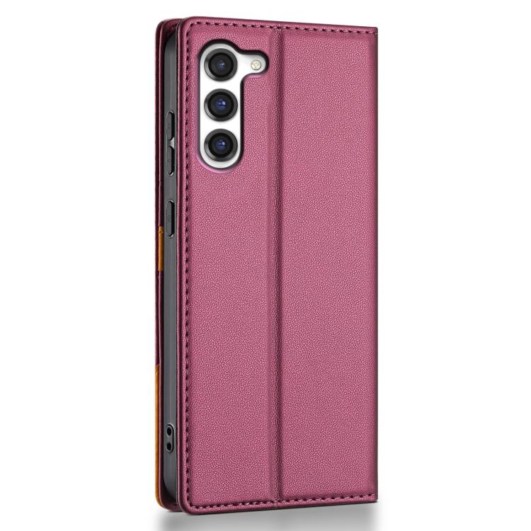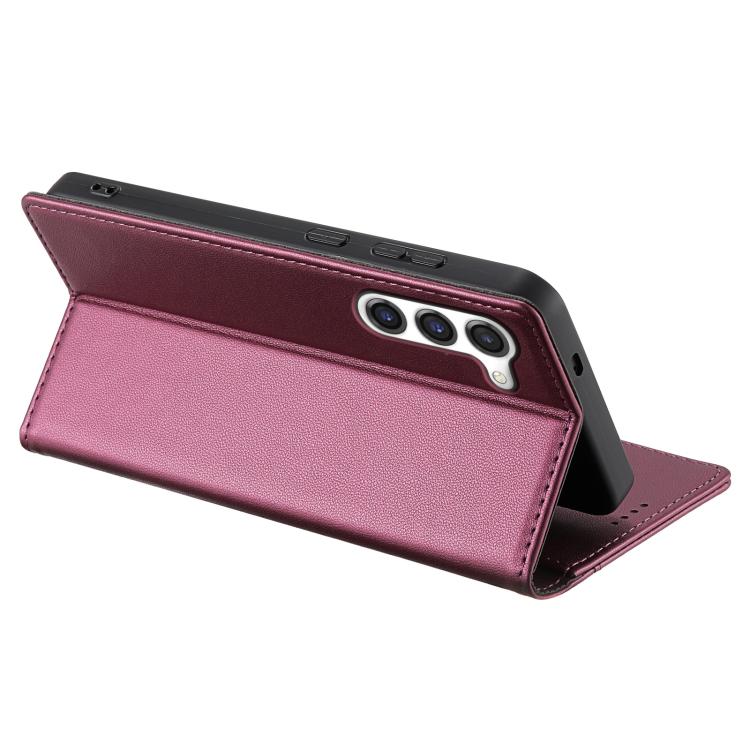 Funda de cuero con tapa magnética y costuras RFID para Samsung Galaxy S23 5G N.BEKUS P3 (rojo vino)