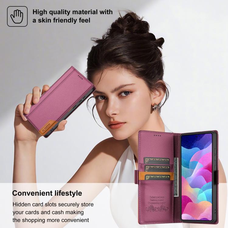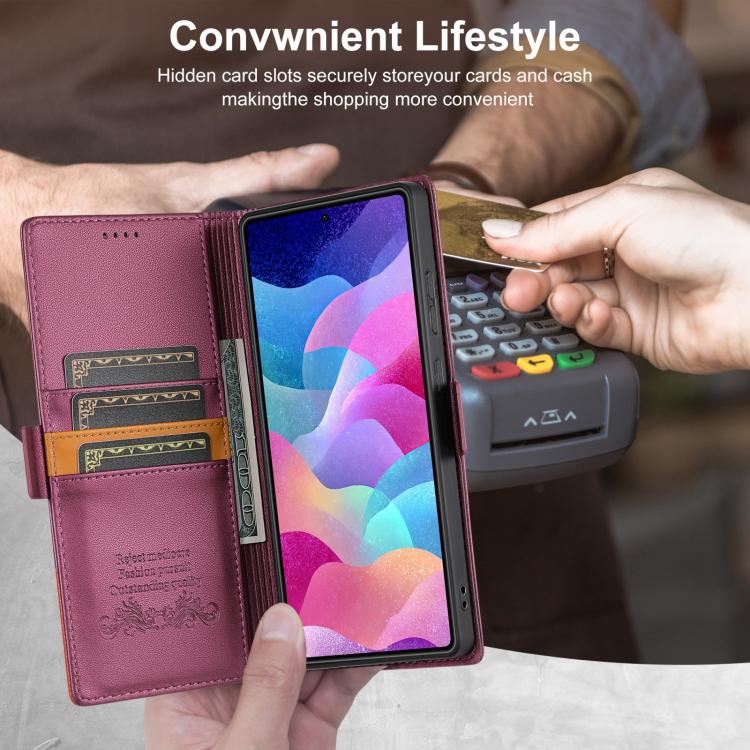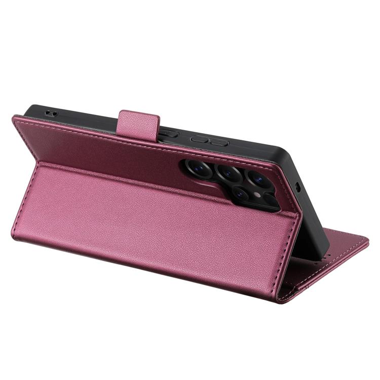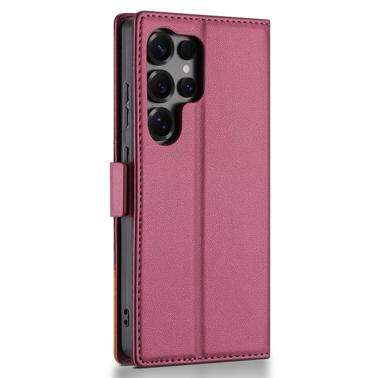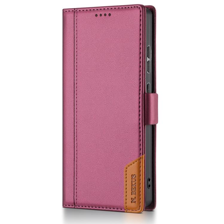 Funda de cuero con tapa magnética y costuras RFID para Samsung Galaxy S23 Ultra 5G N.BEKUS P3 (rojo vino)