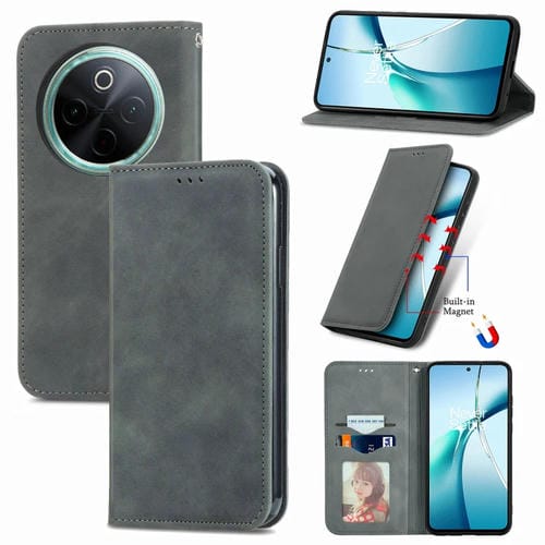 Funda de Cuero con Tapa Magnética y Tacto Retro para Vivo Y300 Pro (Gris)