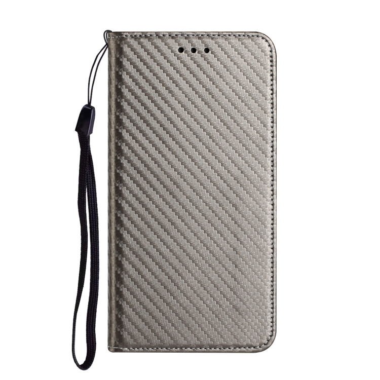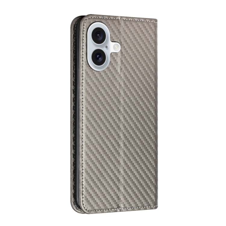 Funda de Cuero iPhone 16 Plus Tapa Magnética Textura Fibra de Carbono (Gris)