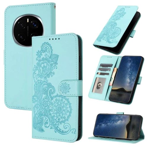 Funda de Cuero con Tapa para Honor Magic7 Pro con Diseño Flor de Datura en Relieve (Azul Claro)