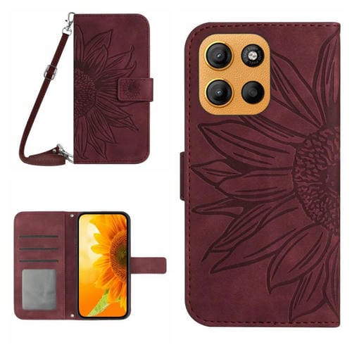 Funda de Cuero con Tapa para Motorola Moto G Stylus 5G 2025 Ht04 con Diseño Girasol y Cordón (Rojo Vino)