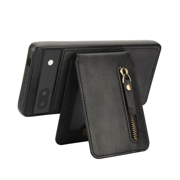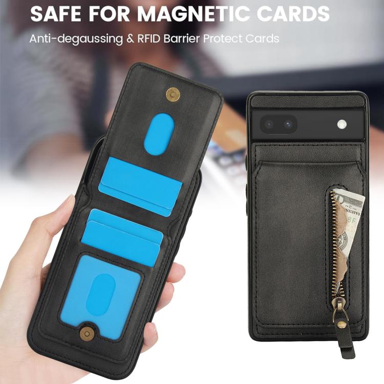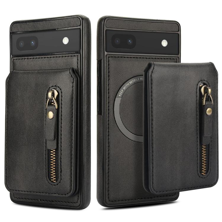 Funda de Cuero con Tapa Trasera Magsafe Dividida y Cremallera para Google Pixel 6 (Negro)