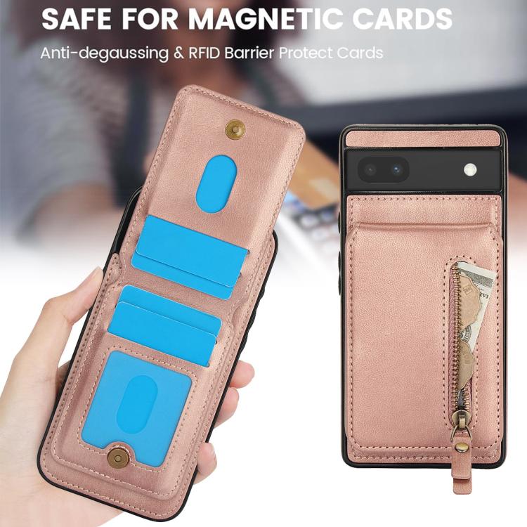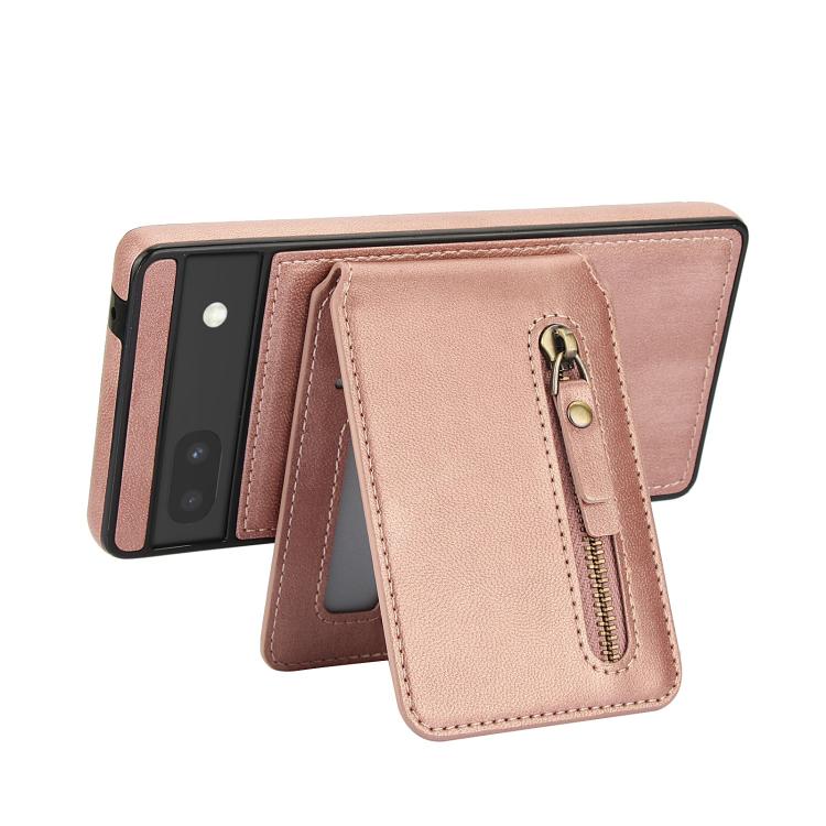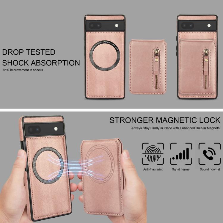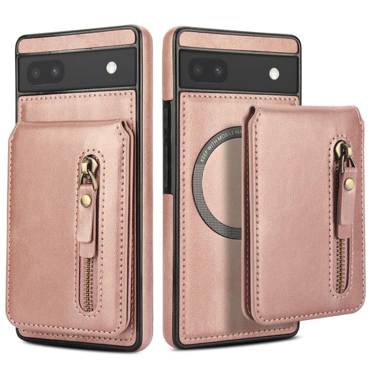 Funda de Cuero Magsafe con Tapa Trasera Dividida y Cremallera para Google Pixel 6 (Oro Rosa)