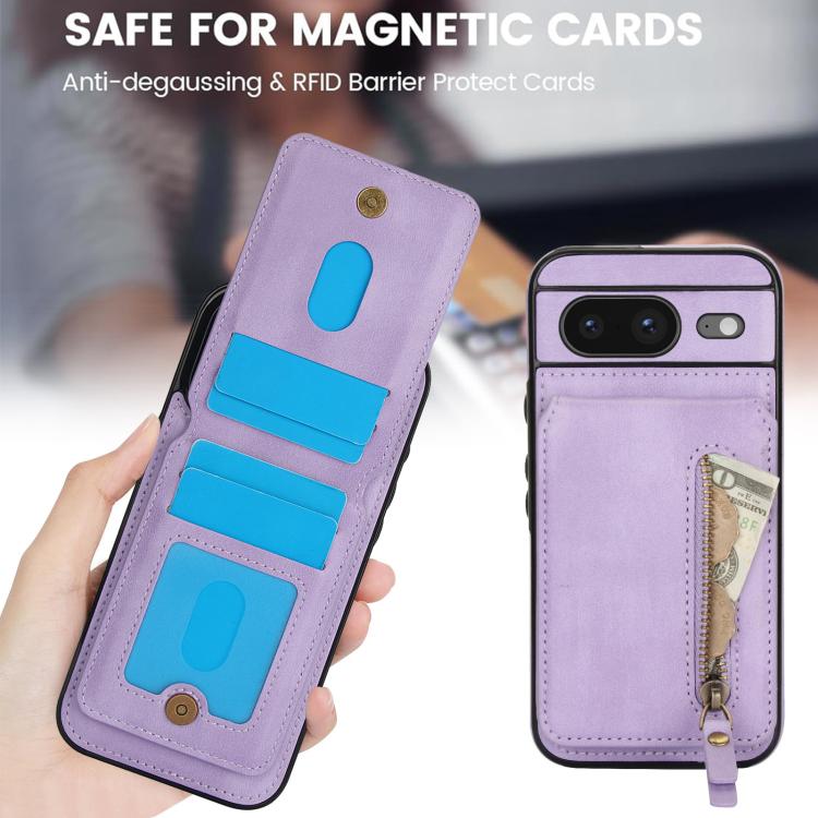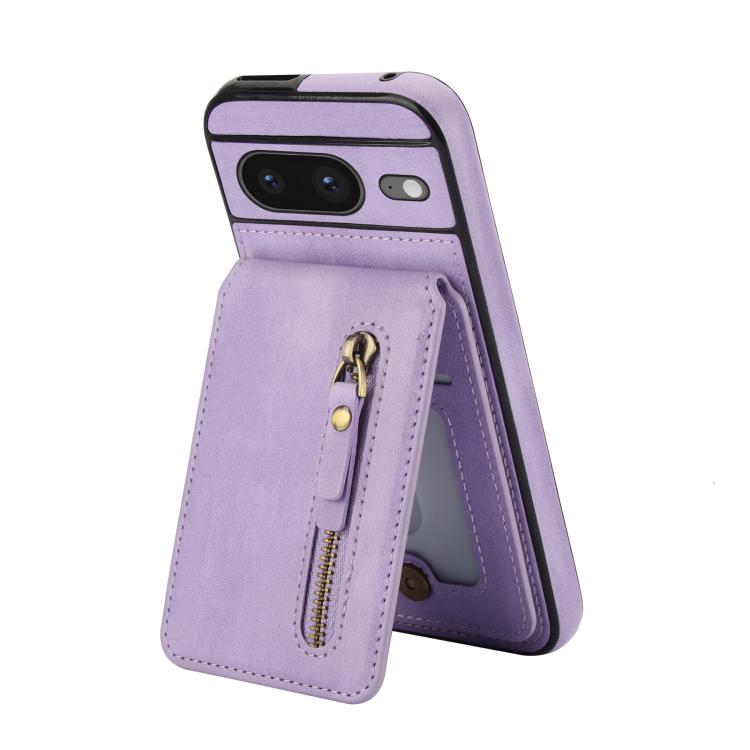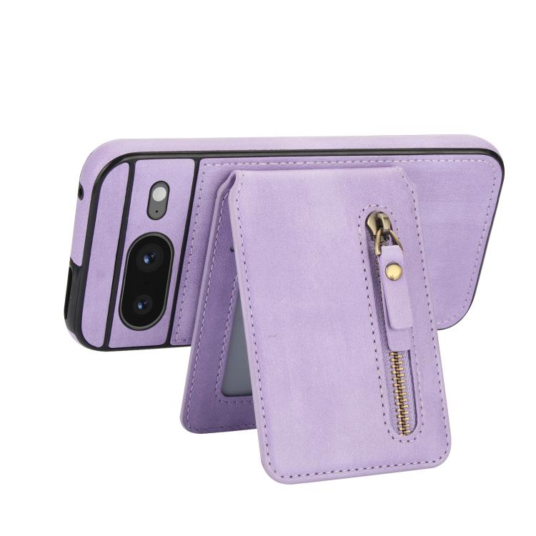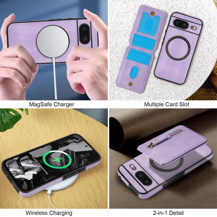 Funda de Cuero con Tapa Trasera Magsafe Dividida con Cremallera para Google Pixel 8 (Morado)