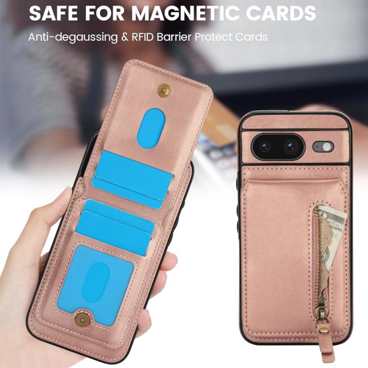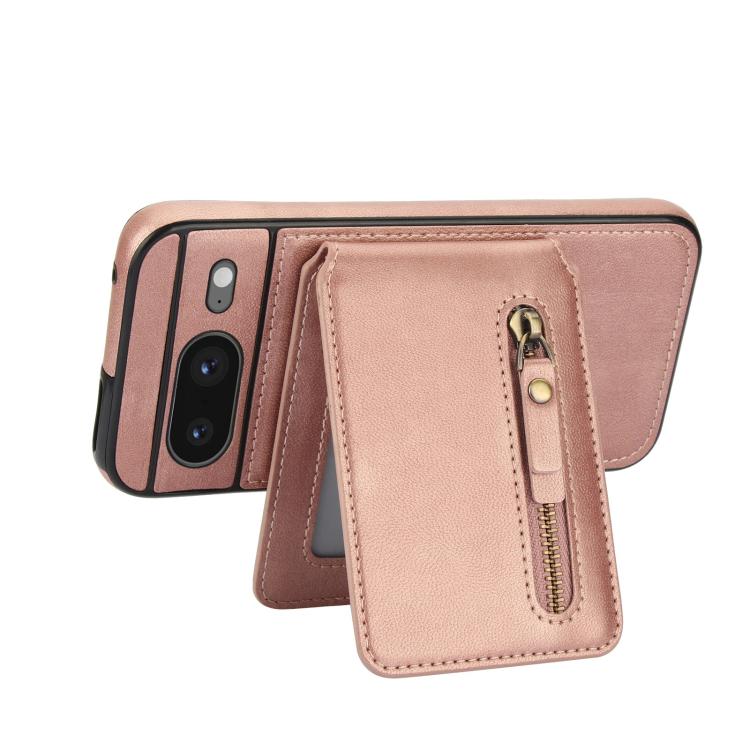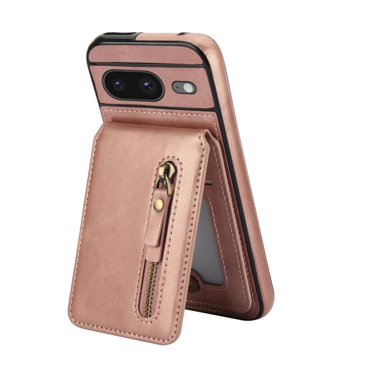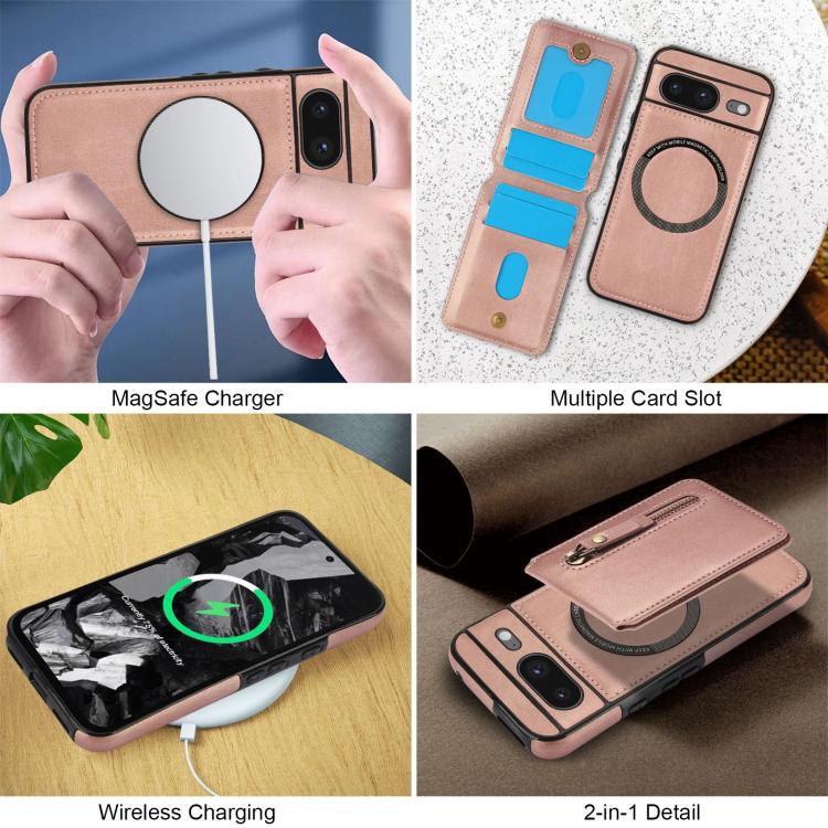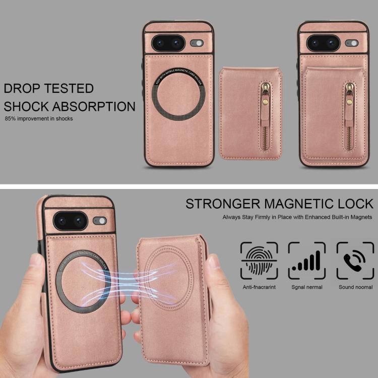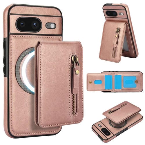 Funda de Cuero con Tapa Trasera Magsafe Dividida y Cremallera para Google Pixel 8 (Oro Rosa)