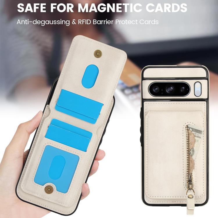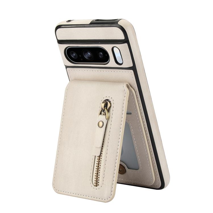 Funda de Cuero con Tapa Trasera Magsafe y Cremallera para Google Pixel 8 Pro (Blanca)