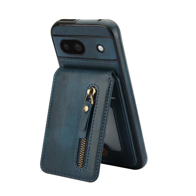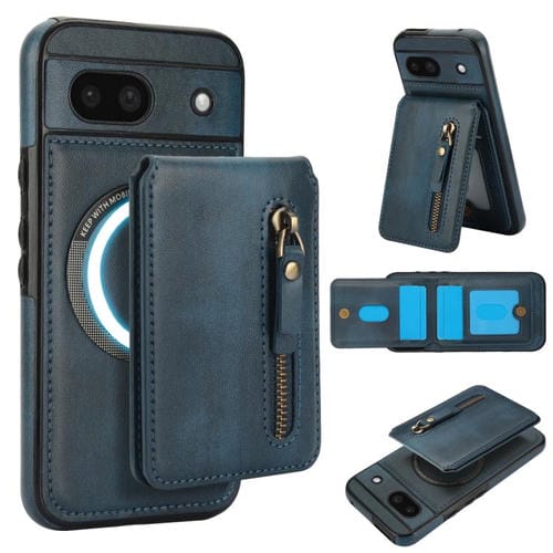 Funda de Cuero con Tapa Trasera Magsafe Dividida y Cremallera para Google Pixel 8A (Azul)