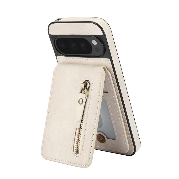 Funda de Cuero con Tapa Trasera Magsafe Dividida y Cremallera para Google Pixel 9 Pro XL (Blanca)