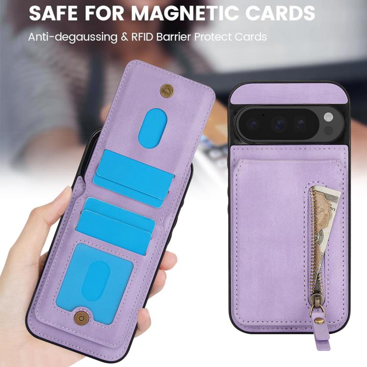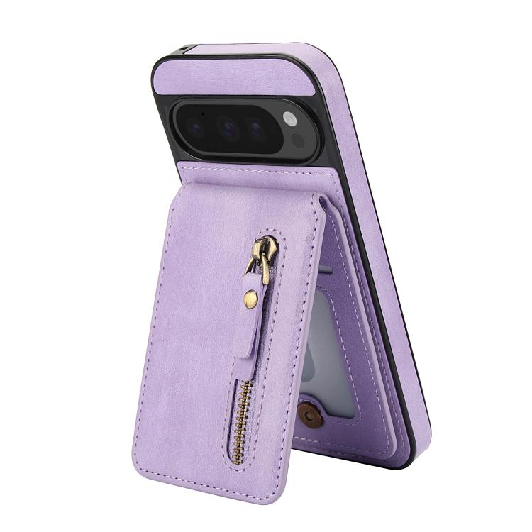 Funda de Cuero con Tapa Trasera Magsafe Dividida con Cremallera para Google Pixel 9 Pro XL (Morado)