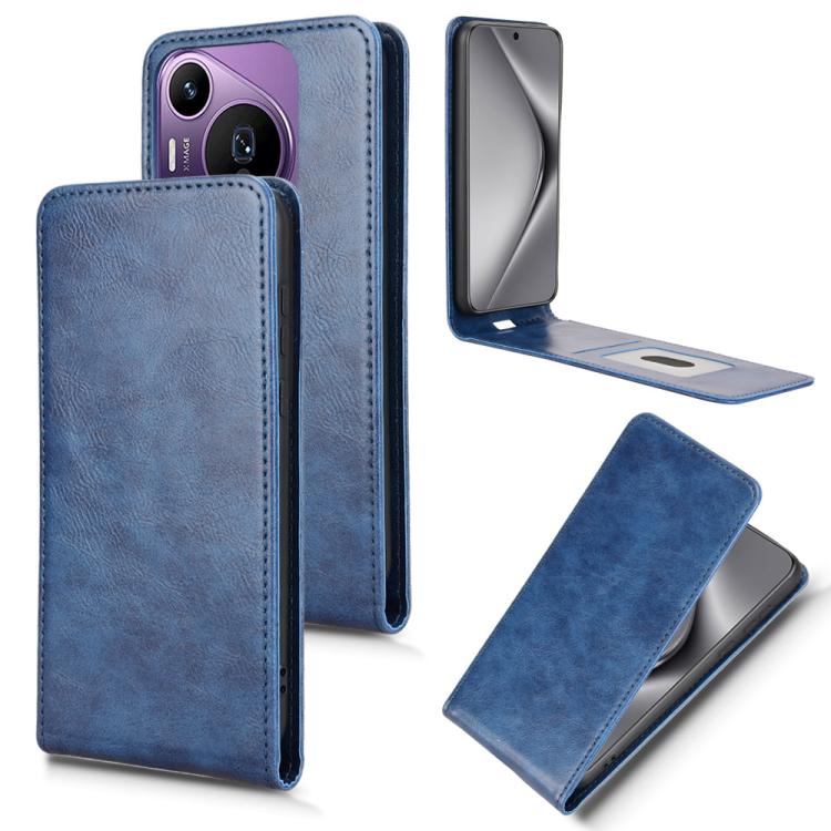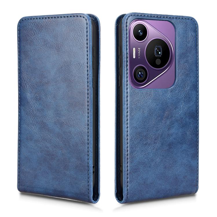 Funda de Cuero con Tapa Vertical Magnética para Huawei Pura 70 Pro 5G y 70 Pro+ 5G (Azul)