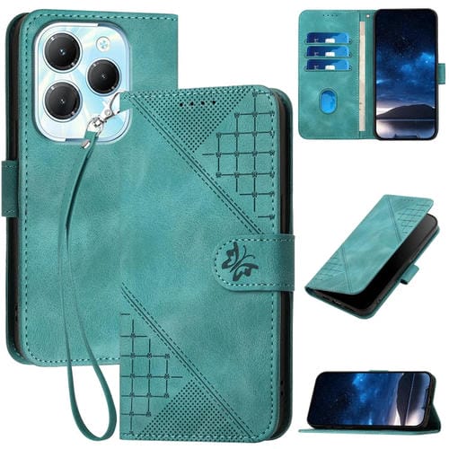 Funda de Cuero con Tapa y Cordón para Infinix Hot 40 Pro 4G Yx0080 con Diseño en Relieve (Azul Claro)