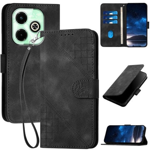 Funda de Cuero con Tapa y Cordón para Infinix Smart 8 Pro 4G Yx0080 con Diseño en Relieve (Negro)