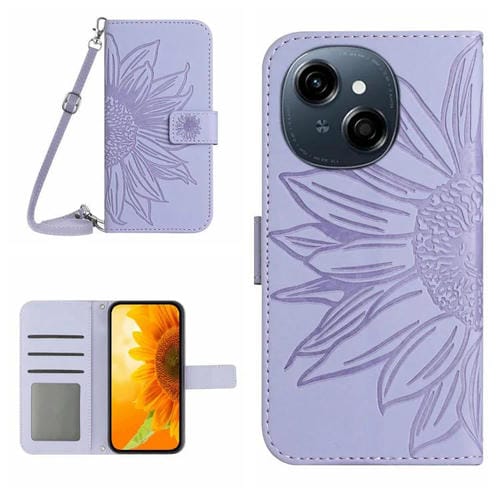 Funda de Cuero con Tapa y Cordón para Tecno Pop 9 4G / Spark Go 2025 4G (Morado)