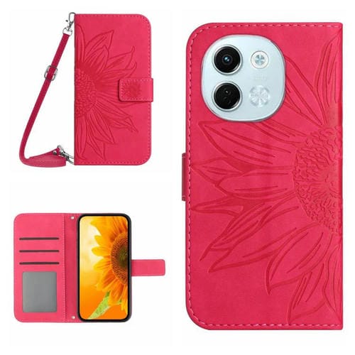 Funda de Cuero con Tapa y Cordón para Tecno Spark 30 5G Diseño Girasol (Rosa y Rojo)