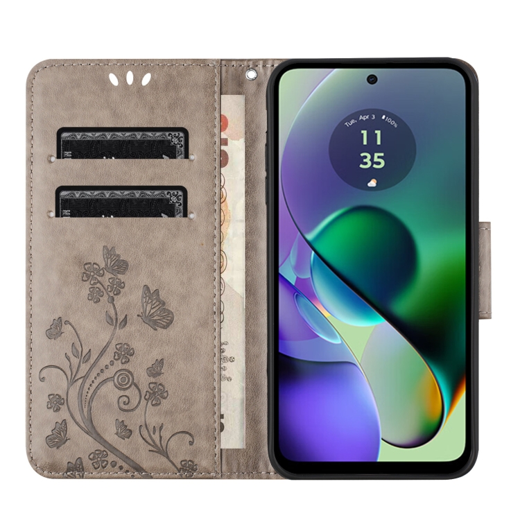 Funda de Cuero con Tapa para Samsung Galaxy A06 4G Diseño Flores y Mariposas (Gris)