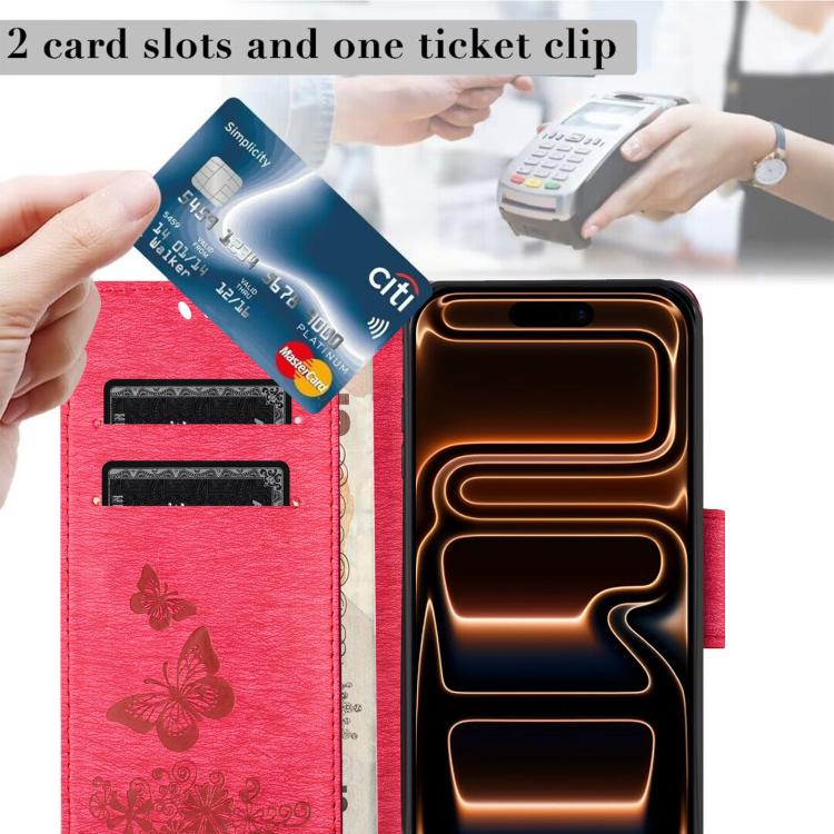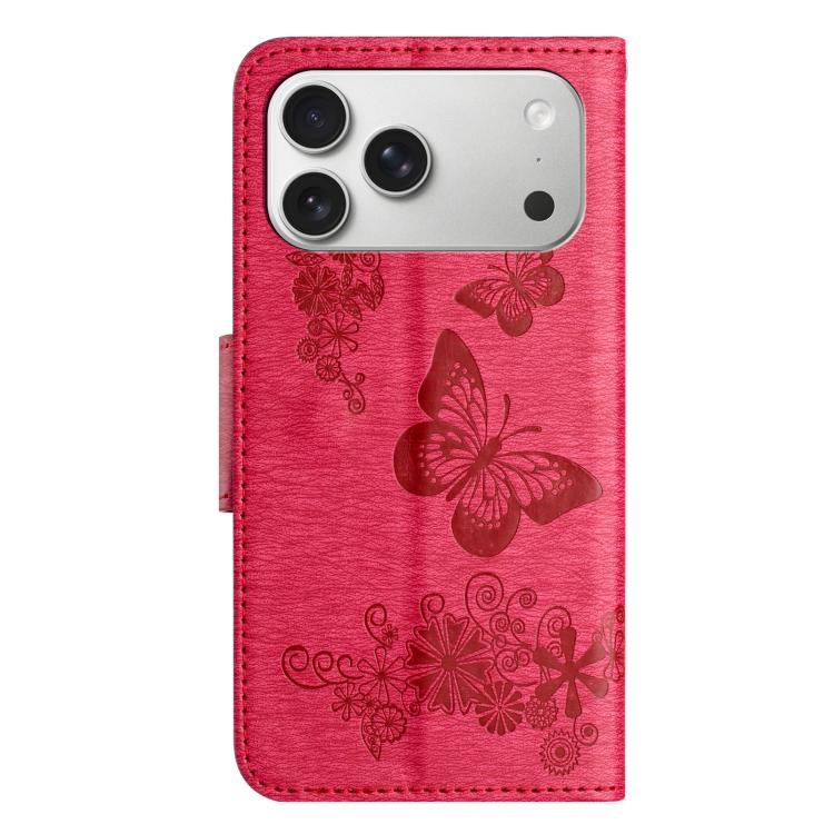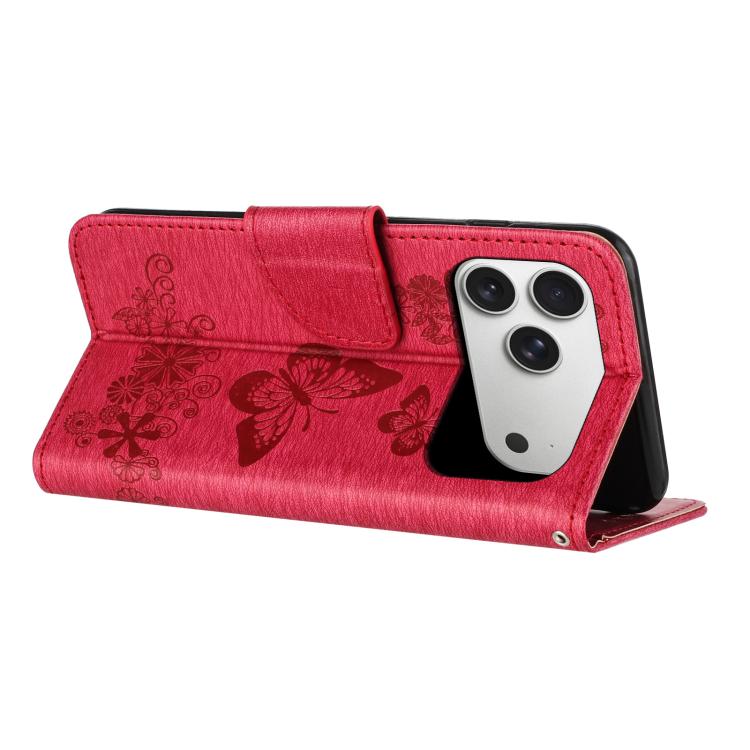 Funda de cuero con tapa y diseño de mariposa para iPhone 17 Pro (roja)