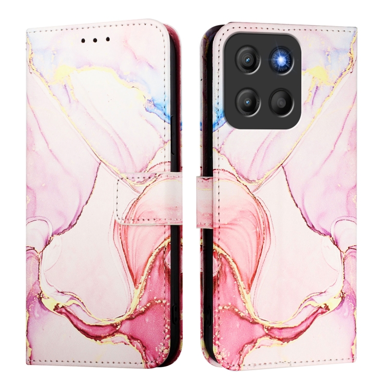 Funda de Cuero con Tapa y Diseño de Mármol para Motorola Moto G15 Pt003 (Oro Rosa)