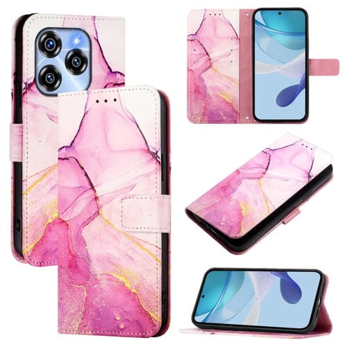 Funda de Cuero con Tapa y Diseño de Mármol para Teléfono Oukitel C50 Pt003 (Rosa, Morado y Dorado)