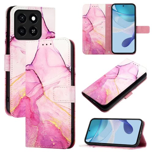 Funda de Cuero con Tapa para ZTE Blade A35/A55 Pt003 con Diseño de Mármol (Rosa, Morado y Dorado)