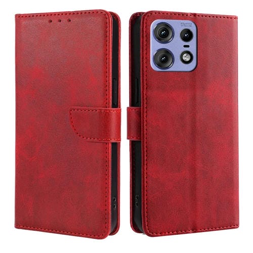 Funda de Cuero con Tapa y Hebilla para Motorola Edge 50 Pro 5G (Rojo)