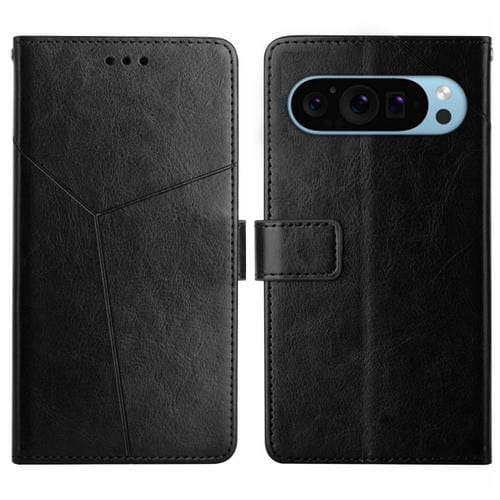 Funda de Cuero con Tapa y Patrón para Google Pixel 9 Pro XL (Negra)
